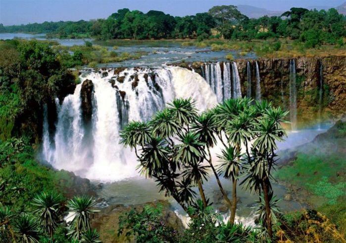 Могучая африканская река Замбези, четвёртая в мире по ширине, вольно неся свои волны по границе Зимбабве и Замбии, вдруг обрушивается в узкий и глубокий каньон. Удар огромной массы воды о камни так силён, что она взметается тучей брызг, видной на расстоянии до 40км и напоминающей столб белого пара.