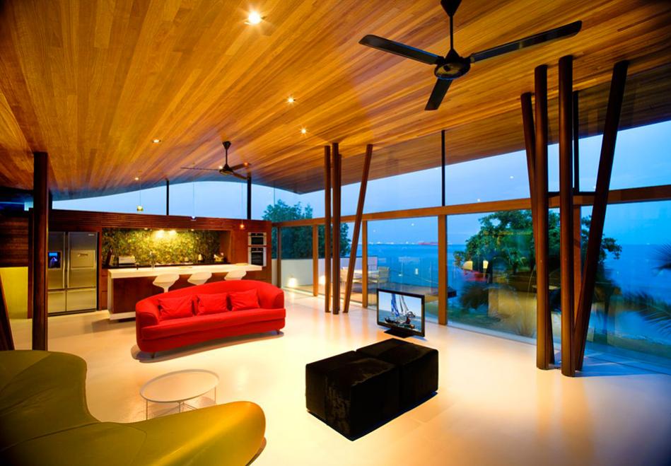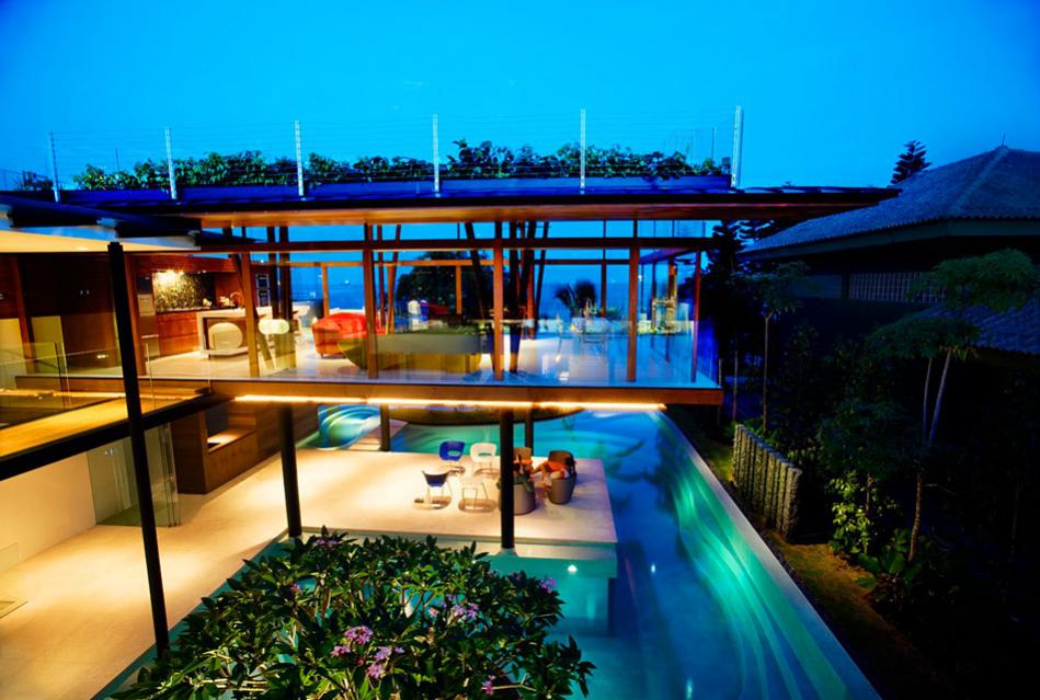Fish House – экзотическая резиденция в Сингапуре, дизайн которой был разработан компанией Guz Architects. Основной идей при проектировке дома было обеспечение взаимосвязи с природой и, в частности, окружающим ландшафтом. Fish House – это «современный тропический бунгало», который идеально интегрирован в климатические и природные условия данной местности. Естественная вентиляция, большое количества дневного света, стеклянные стены, вид на море, роскошный бассейн – все это стало возможным благодаря наличию красивейшей природы вокруг дома и спокойной атмосфере района в целом.