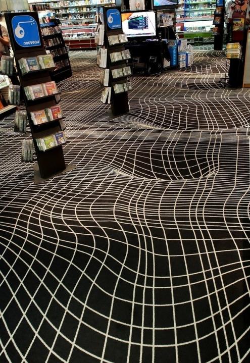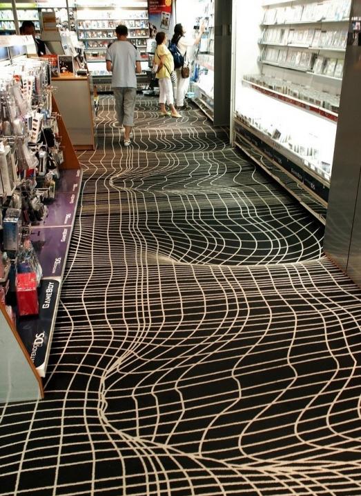 Мне не нравится такое искусство. Пойдешь так вот и голова закружится. Они б еще такой пол в больнице сделали, где пожилые люди ходят и люди с проблемами головокружений. Это, похоже, магазин какой-то. А там ведь тоже разные люди ходят, а здоровых людей мало на свете. Можно было бы его на танцевальных площадках для молодежи сделать, но те обычно бывают пьяненькими, когда веселятся. Тоже бы падали. Но там хоть поржали бы друг над другом. Но в общественных местах!.. Неет, не годится.loho:
