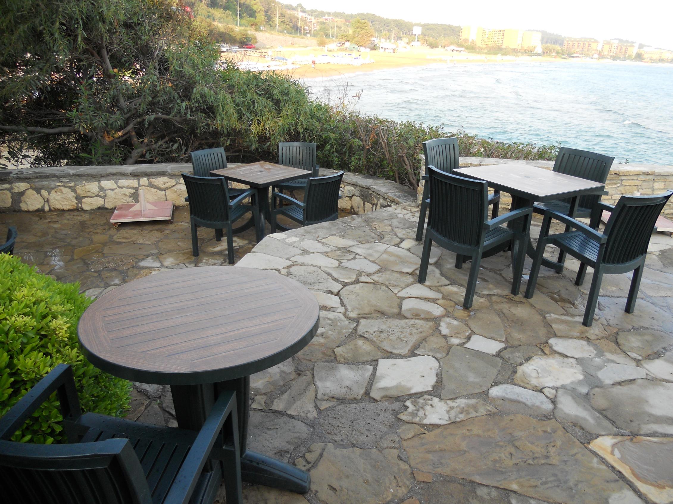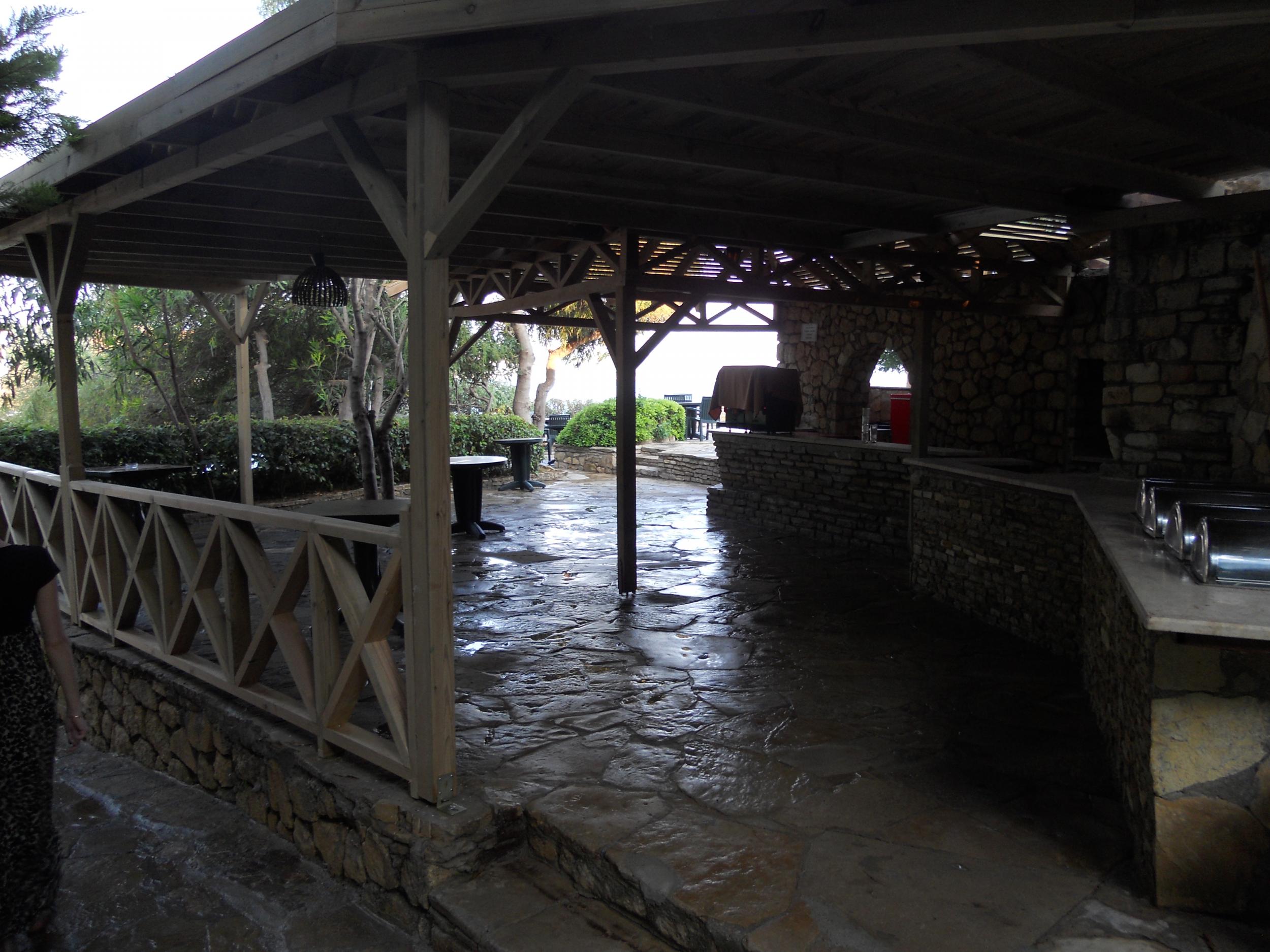 Отель на берегу моря, скалистый пляж, но есть заход в море, засыпанный песком. С детьми недостаточно удобно будет на этом пляже, так как бывает шторм и поцарапаться о скалы можно достаточно сильно.