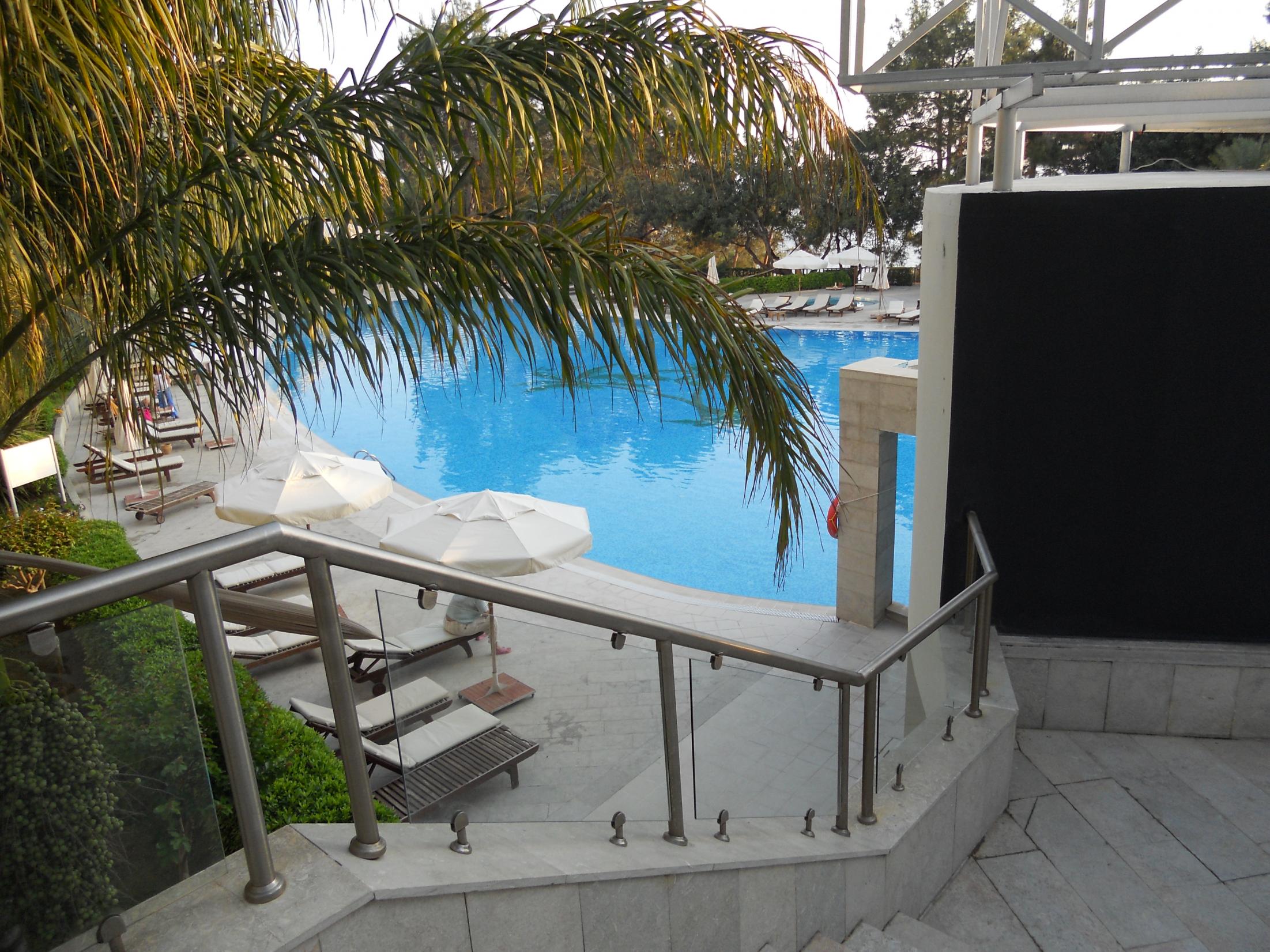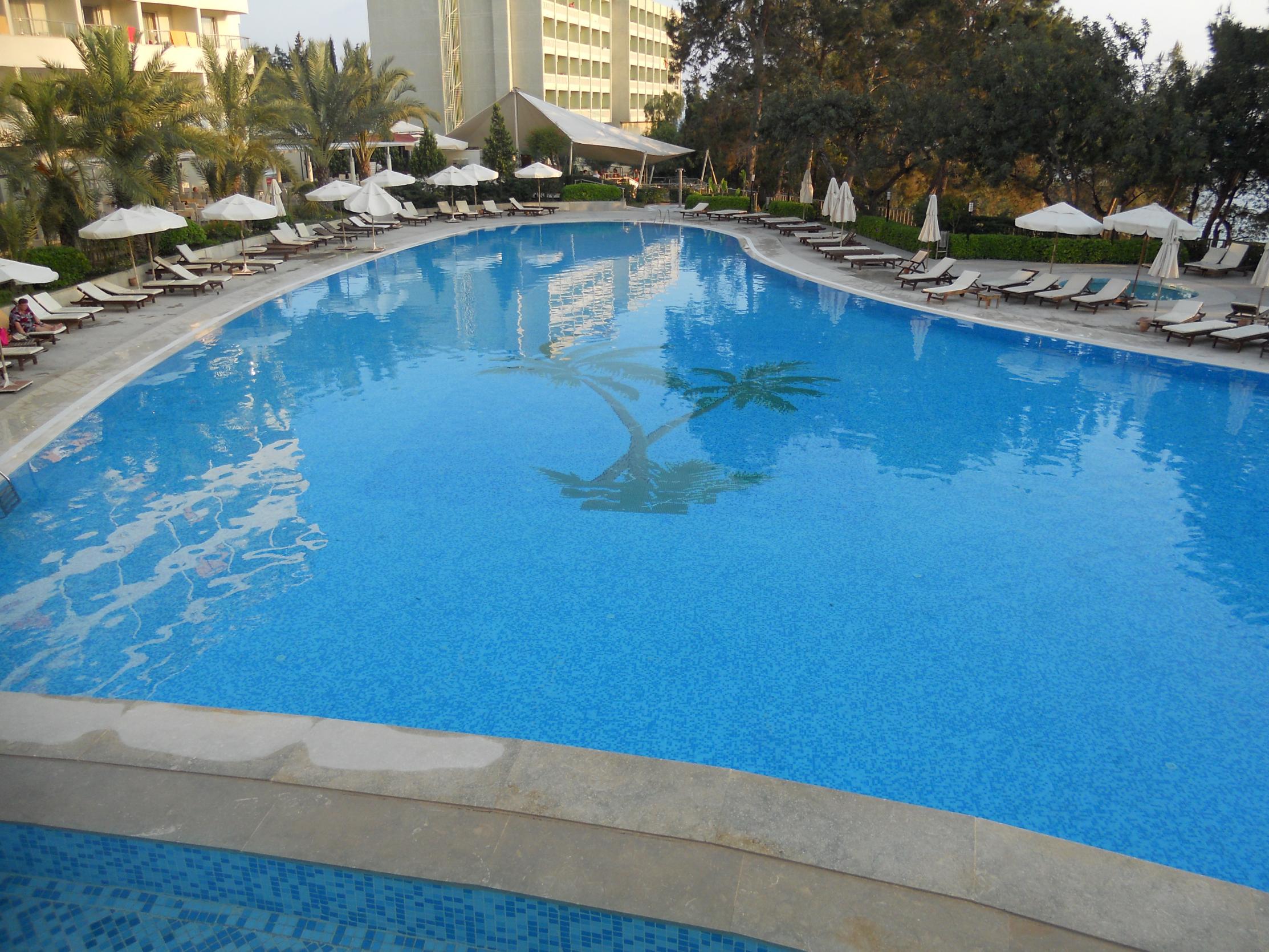 Тихий район, но не совсем окраина, комплекс из трёх зданий, но не особо многолюдно. А если добавить большой бассейн, с переменной глубиной (от 1,5 м до 2,5м), расположенный не вдоль пыльной дороги, а в центре большой ухоженной зеленой территории, хамам, наличие открытого кафе, в котором всегда свежие пирожные и выпечка, разнообразие ресторанного меню, развлечения (настольный теннис), то обязательно стоит присмотреться к этому варианту.