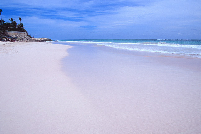 Настоящий розовый песок на Бермуде есть, а вот какая картина на Барбадосе, смотрите.
