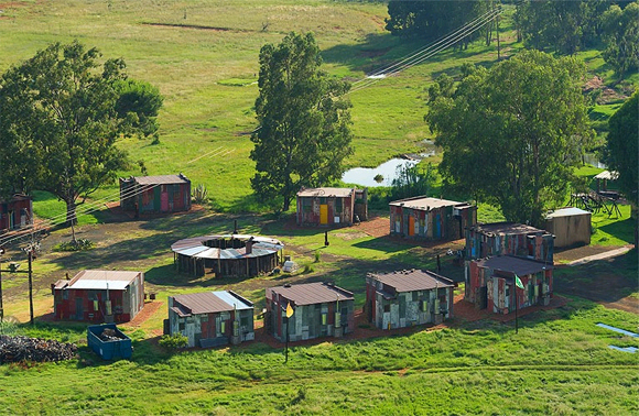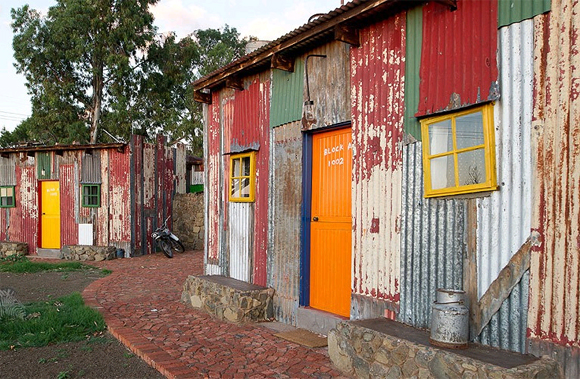 Странный и необычный пятизвездочный отель Shanty Hotel состоит из нескольких домиков, собранных из листового металла, так же как и большинство трущоб в Южной Африке. Мебель, сантехника и электрические приборы, которые используются в отеле были созданы, по крайней мере в молодости наших мам. Все это сделано для того, чтобы богатые туристы могли ощутить на своей шкуре как живется беднякам.
