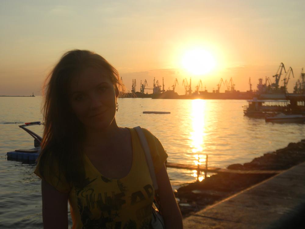 На следующий день мы отправились на местную набережную в более позднее время и удивились - здесь ходят толпы людей, отовсюду играет музыка и все светится. Мы прошлись тем же маршрутом практически до самого тупика и увидели знаменитую косу, которая в темное время полностью освещается и выглядит сверкающей дорожкой в воде. Зрелище очень красивое, но мой фотоаппарат не смог настроится на нужную волну и сделать качественное фото. Но у нас получилось словить момент захода солнца и меня на его фоне=)
