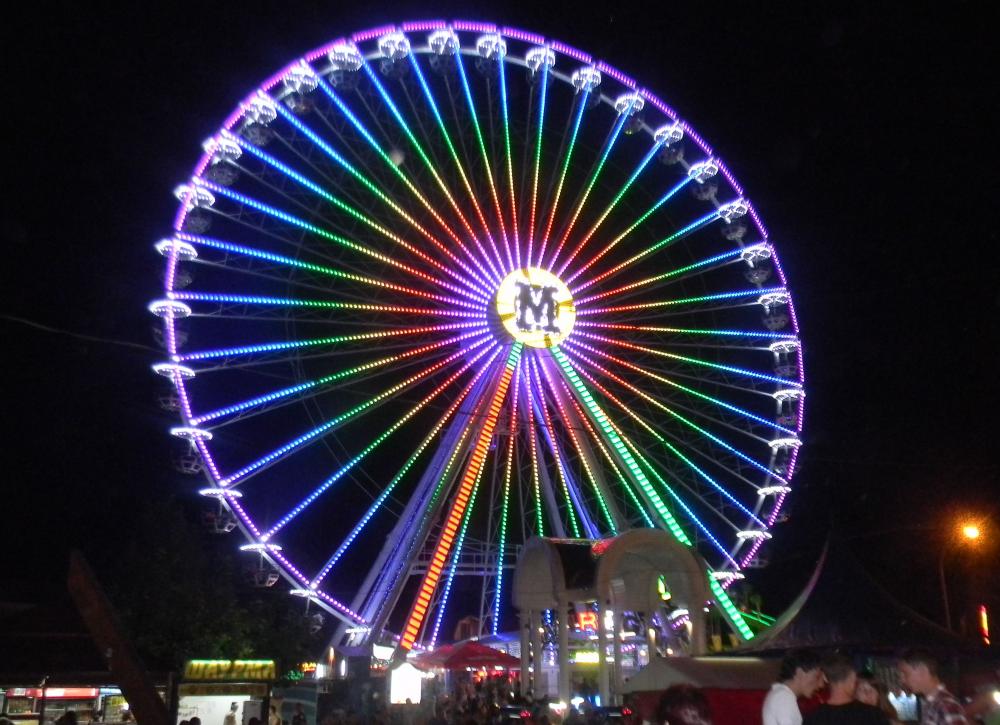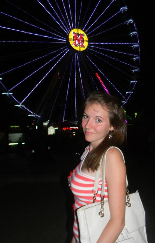Зато я могу показать колесо обозрения в ночное время. Выглядит оно очень круто и в остальных городах Украины мне такие не встречались пока еще. Увы, фото на его фоне не передает всей красоты, но отдельная фотография показала его подсветку. Кто бы подумал, что дне и вечером это одно и тоже колесо.