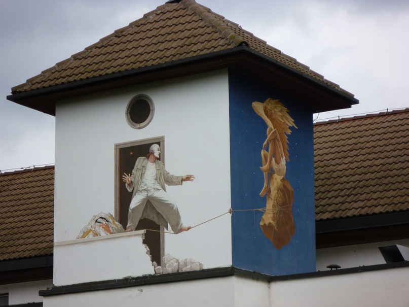 Здесь есть очень приятная центральная площадь с милыми домиками с цветами и росписями на фасадах.