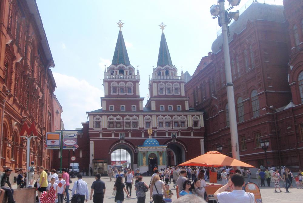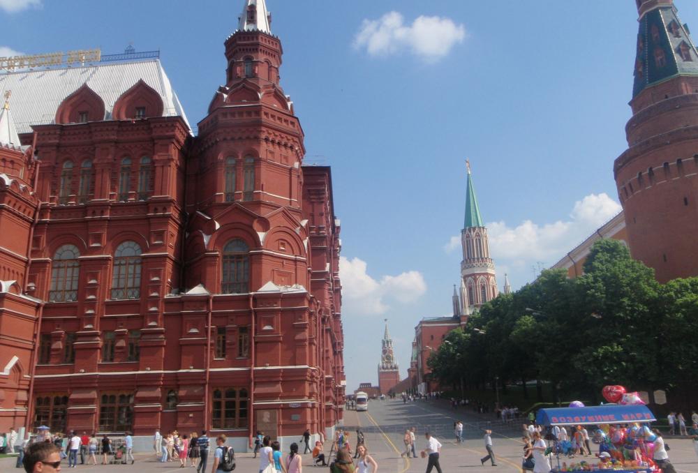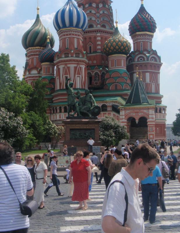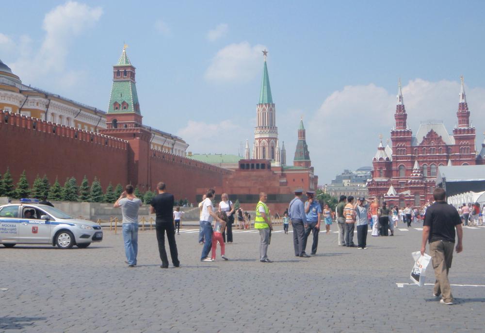 Красная площадь в Москве подобна Питерской площади около Эрмитажа. Здесь пешеходная зона и автомобилей нету. Это на радость туристам, т.к. можно свободно ходить и не бояться, что кто-то выедет со стороны на автомобиле.