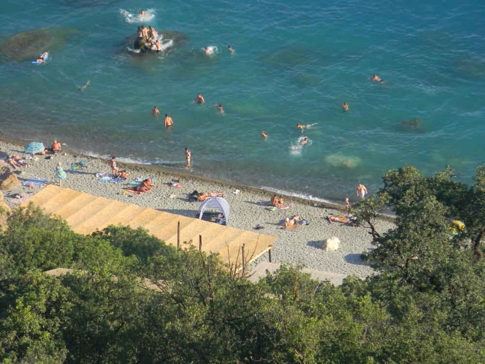 Как добраться до Фиолента? Это можно сделать двумя путями - со стороны моря на пароходе и со стороны суши. Последний вариант интересный, но долгий. Нужно пройти почти 850 ступенек прежде, чем оказаться около воды. По этой причине пляж и называю отчужденным. Остаться здесь наедине с любимым вполне реально.