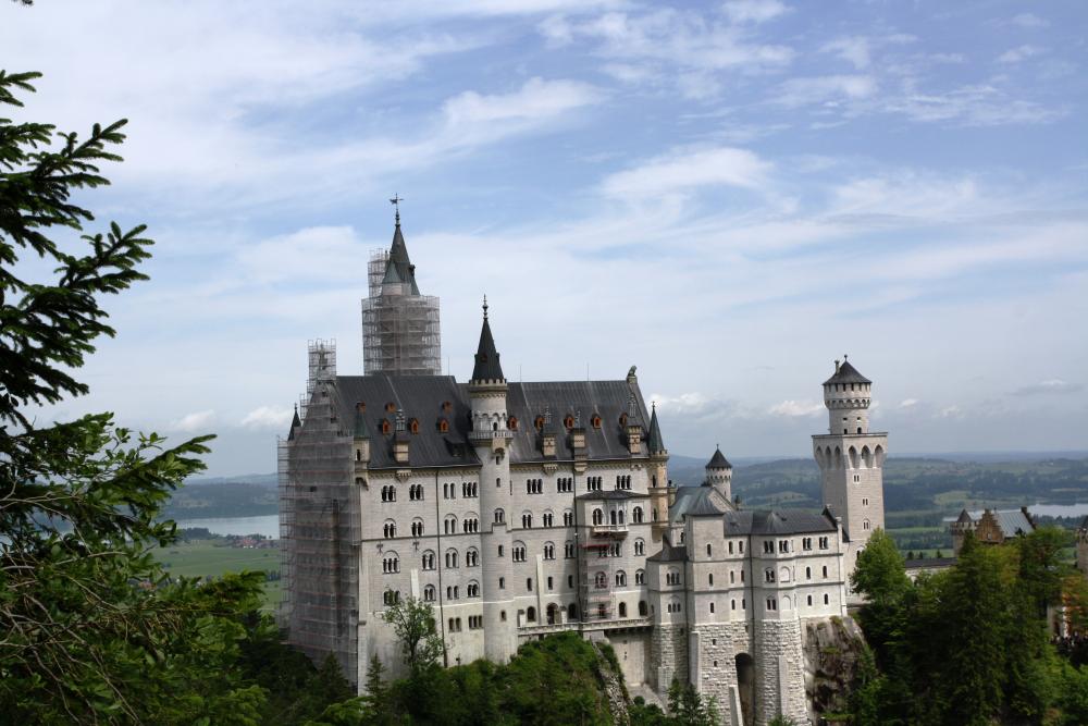 Городок Фюссен, где находится этот замок, тоже похож на сказку. Может быть потому, что находится он в Баварских Альпах. Местность красивая , зеленая свежая трава, горы и озера.