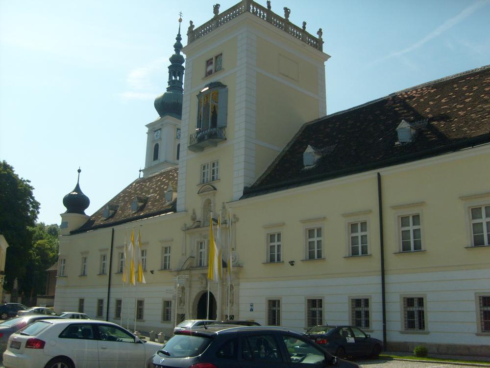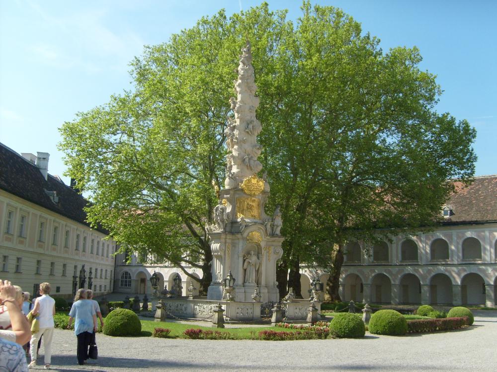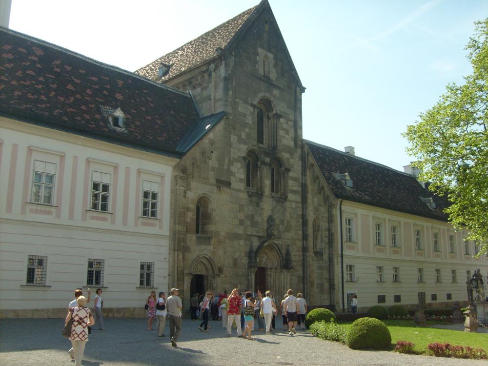 Следующее место, которое мы посетили, монастырь Хайлигенкройц, основанный в 12 веке. До середины 15 века монастырь расцветал, а потом у него были трудные времена. Сейчас в монастыре находятся постоянно около сотни монахов. Здесь находится платный католический университет.