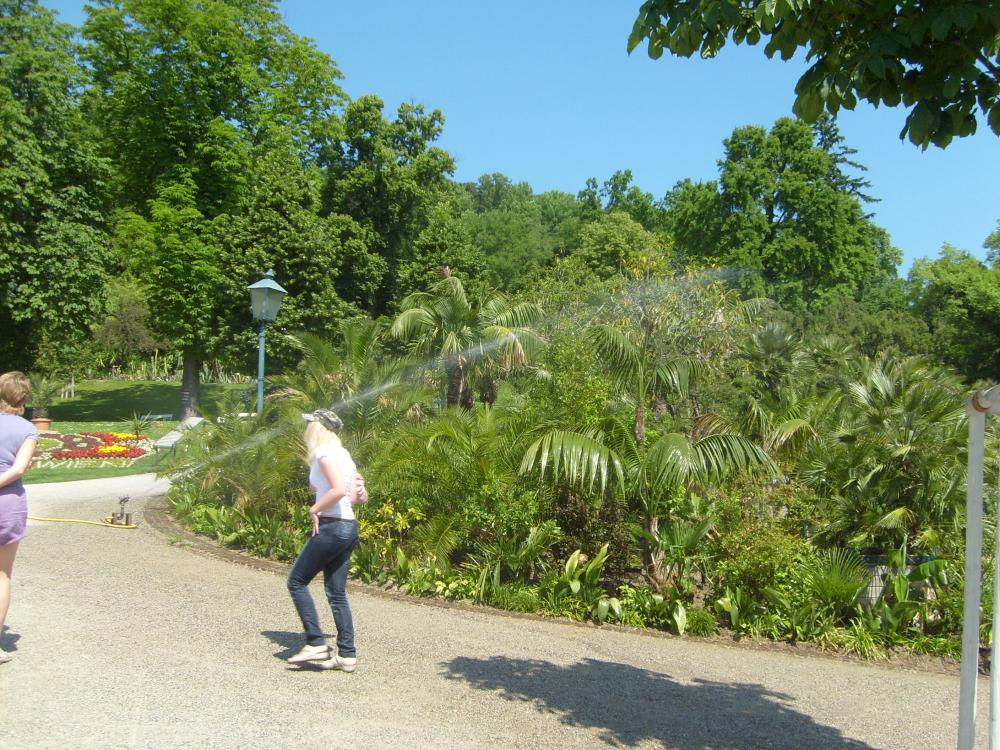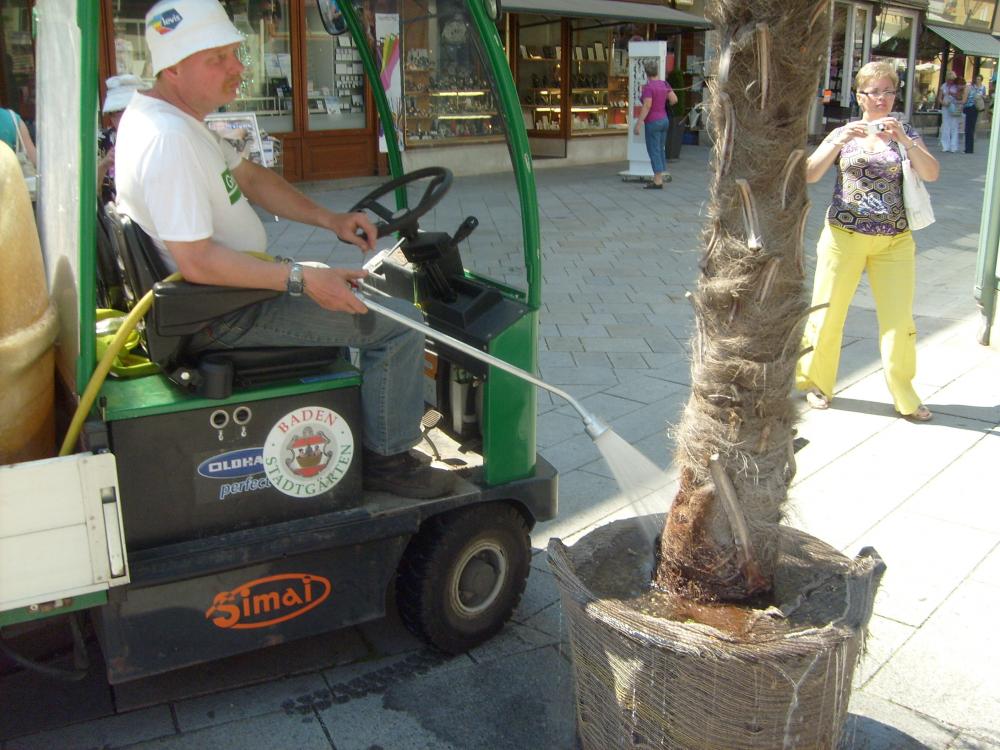 Много деревьев , особенно молодые растут в кадках, их поливают.