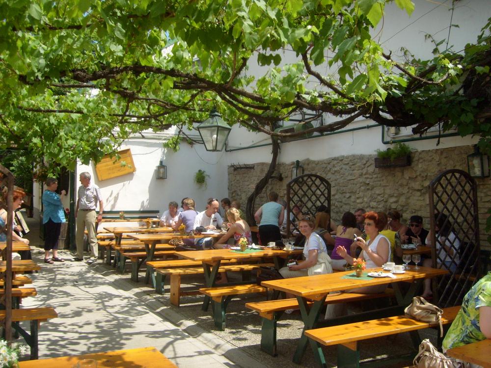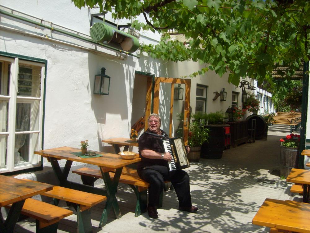 После Бадена мы поехали обедать в ресторанчик в деревне, которой 1140 лет. Такая нарядная деревня, я бы сказала, что это небольшой городок. Улочки настолько узкие, что автобусу трудно было повернуть. Я думаю, что в этот ресторан постоянно туристов возят, так как там и аккордионист был и «Катюшу» играл.