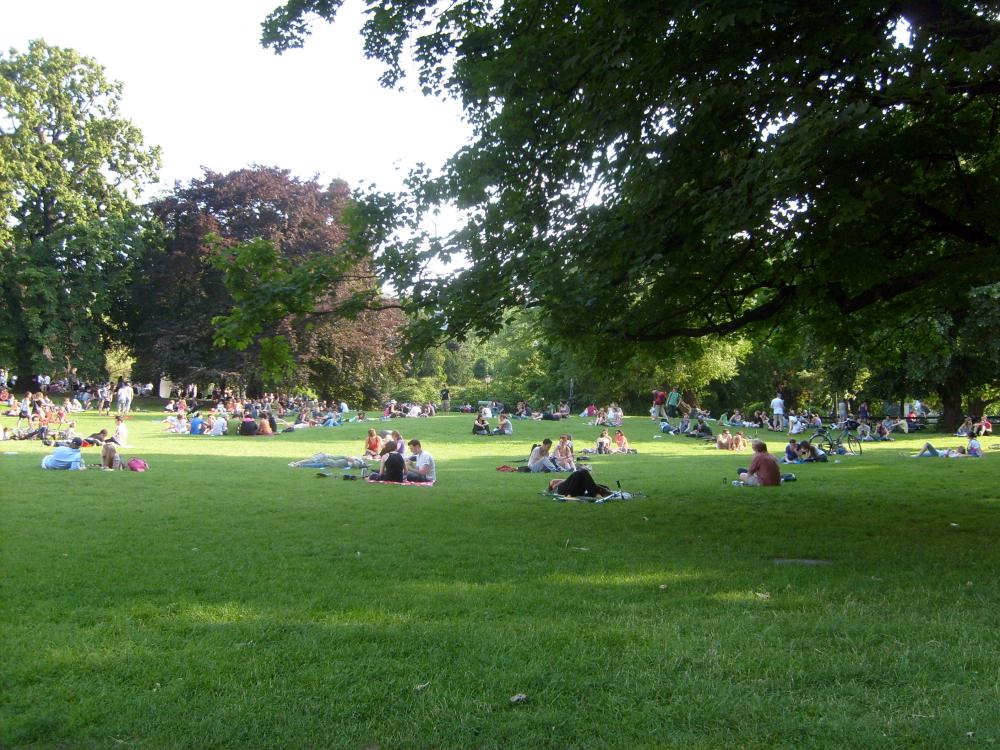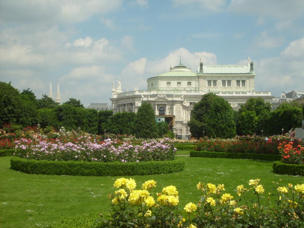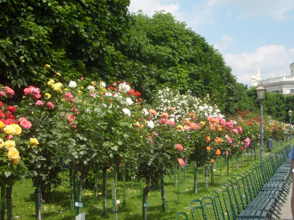 Рядом с дворцовым комплексом находится Народный сад, где необыкновенные кусты роз. Я такие кусты видела первый раз в жизни. Белые, желтые, красные, оранжевые кусты расположены везде. А на лужайках этого сада любят отдыхать венцы. Приносят еду на подносах и отдыхают. Рабочий день в Австрии начинается очень рано, поэтому к трем часам начинается отдых.