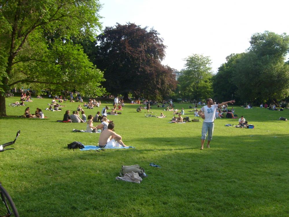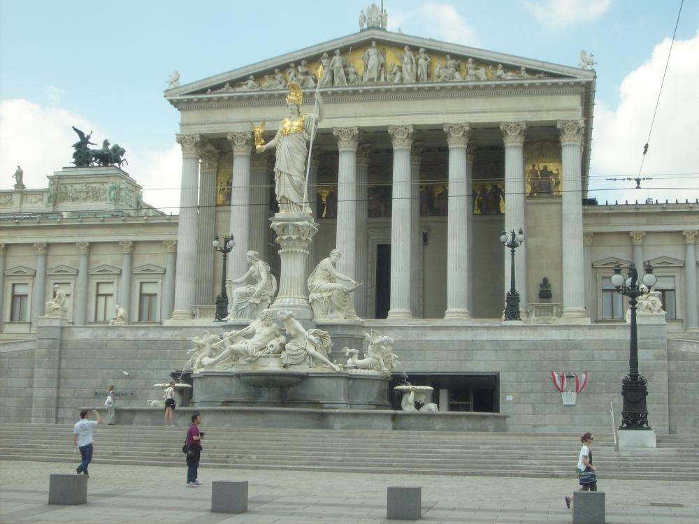 Рядом с Народным садом находиться здание парламента с римским памятником перед ним, а рядом с Парламентом еще зеленые парки со скамеечками, где полно отдыхающих, а на лужайках гуляют с собаками. Причем за то, что хозяева собак не убирают за ними предусмотрен неслабый штраф.