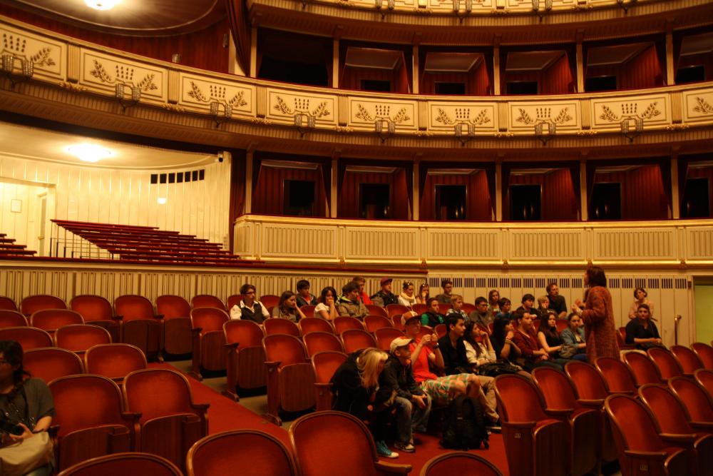 Мы попали на экскурсию в здание оперы, нас провели по всем залам, девушка рассказала о балах, которые здесь проводятся.