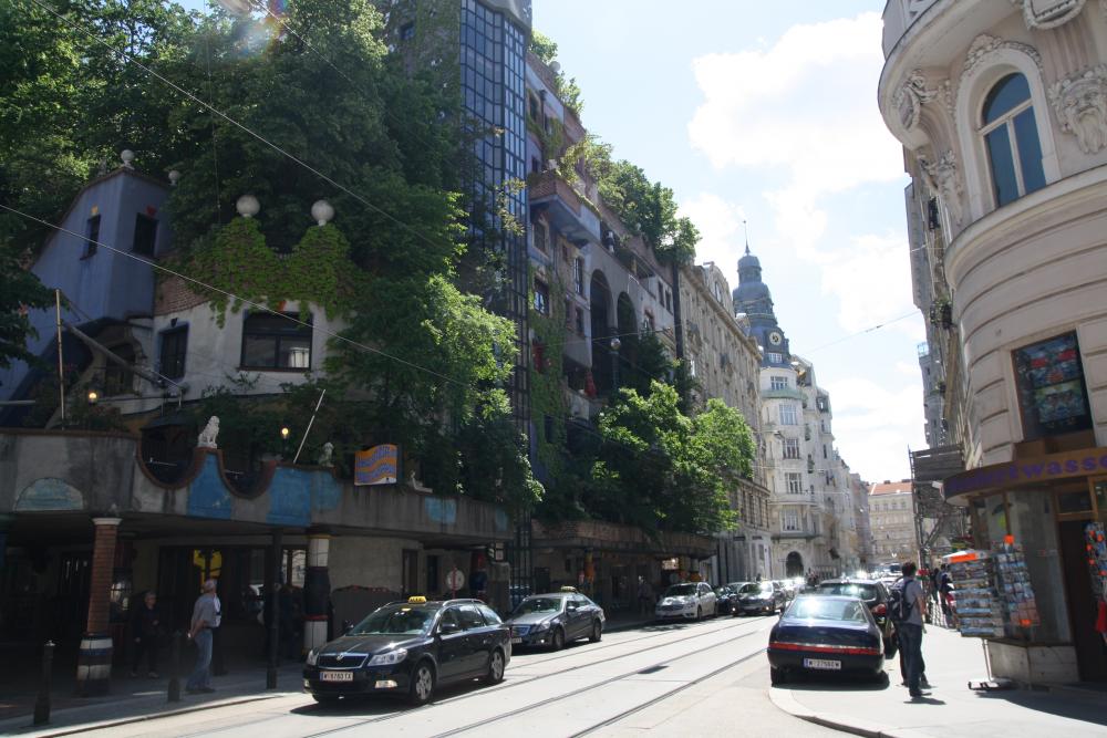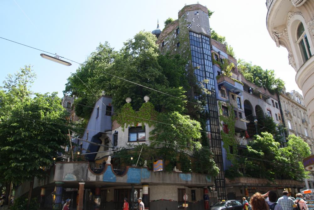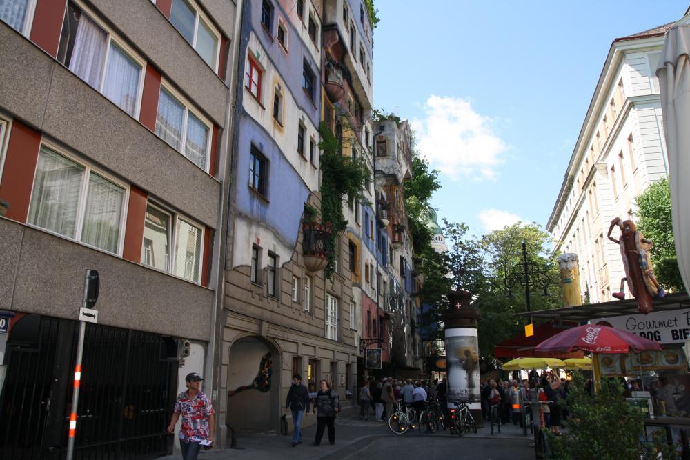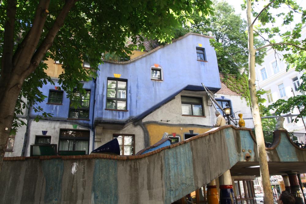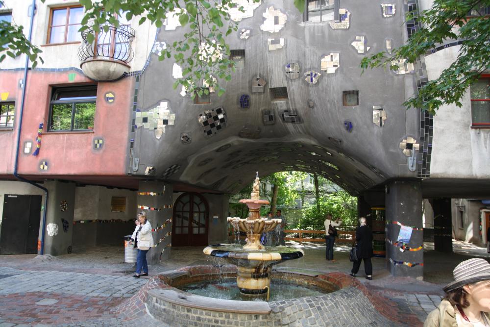 В Вене есть еще одна достопримечательность , около которой невозможно пройти. Это дом Хундертвассера . Автобусы подъезжают и тут же меняются. Туристов полно. Мне жалко жителей, которые в нем живут. Он считал, что люди не должны жить в одинаковых домах. На домах должны расти деревья и т.д.