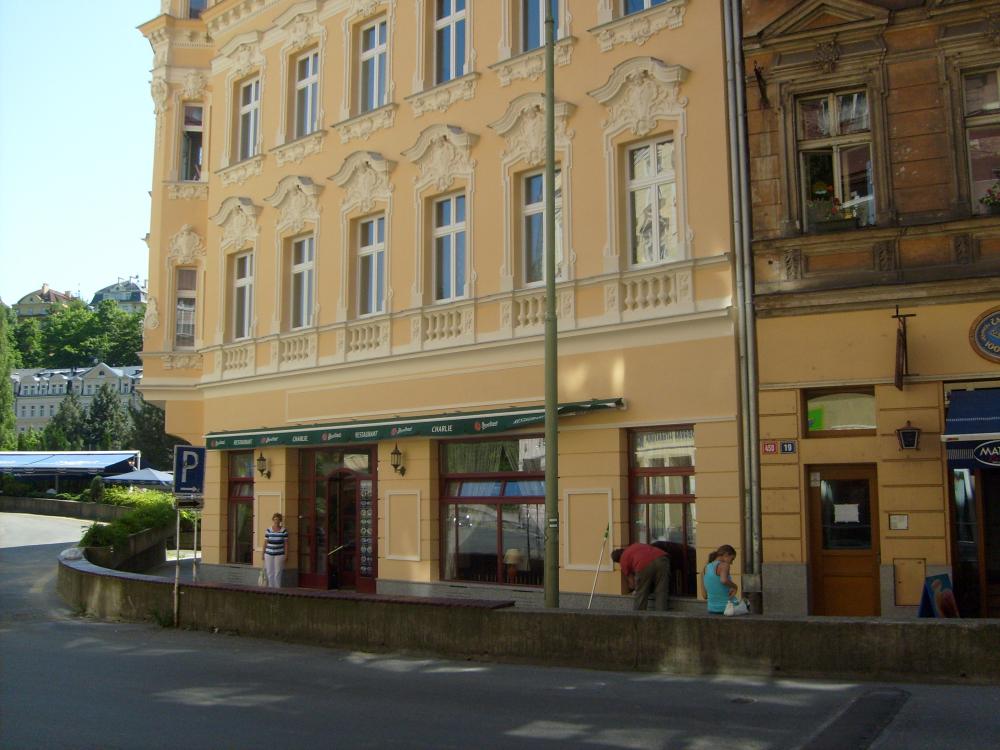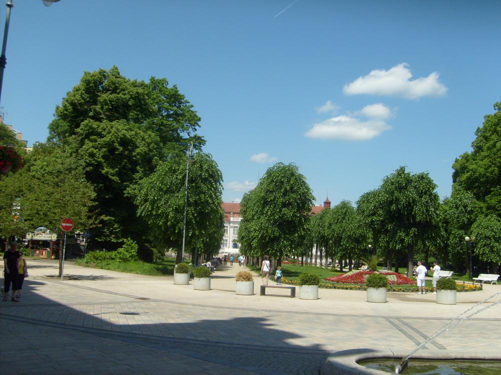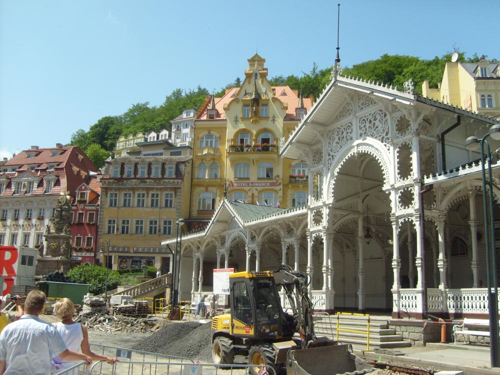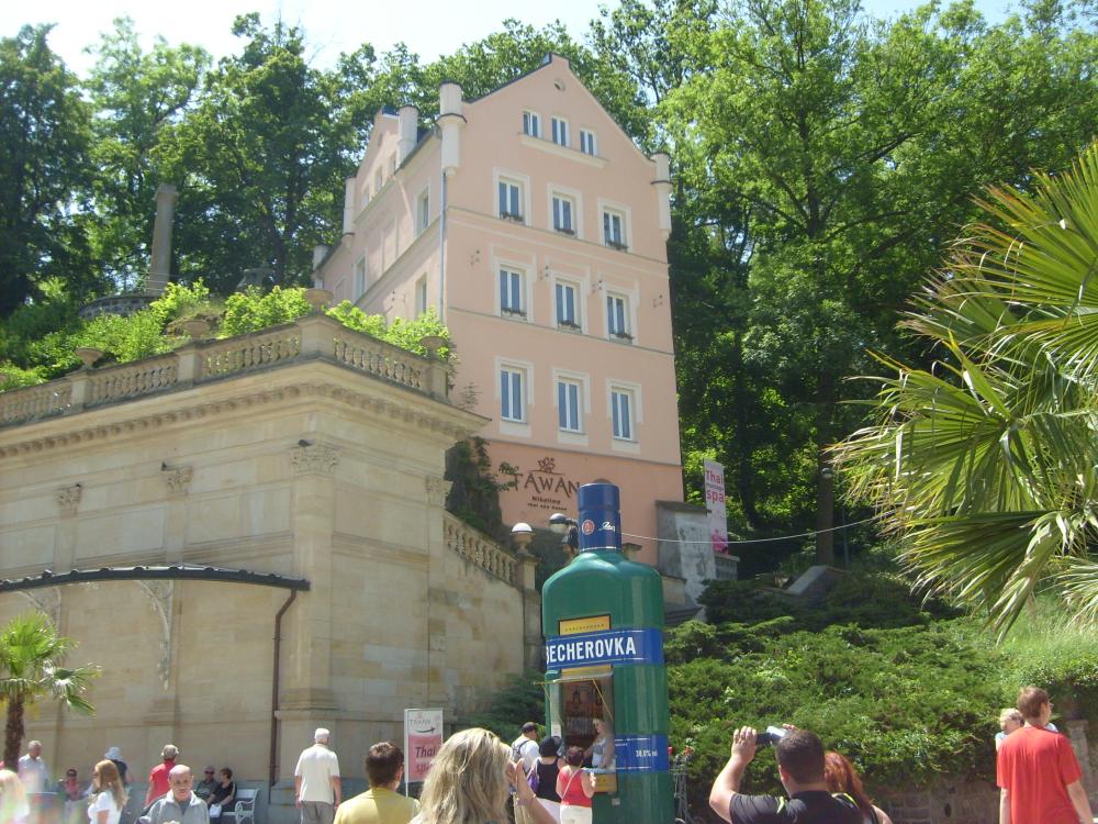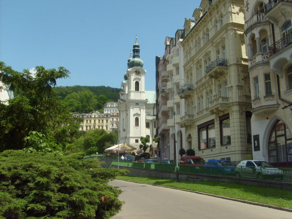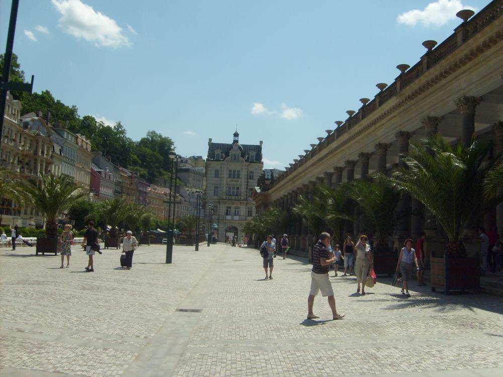Мы приехали в Карловы Вары в очень жаркий день. Город находится в красивом ущелье на высоте 400 метров, окруженный лесами.