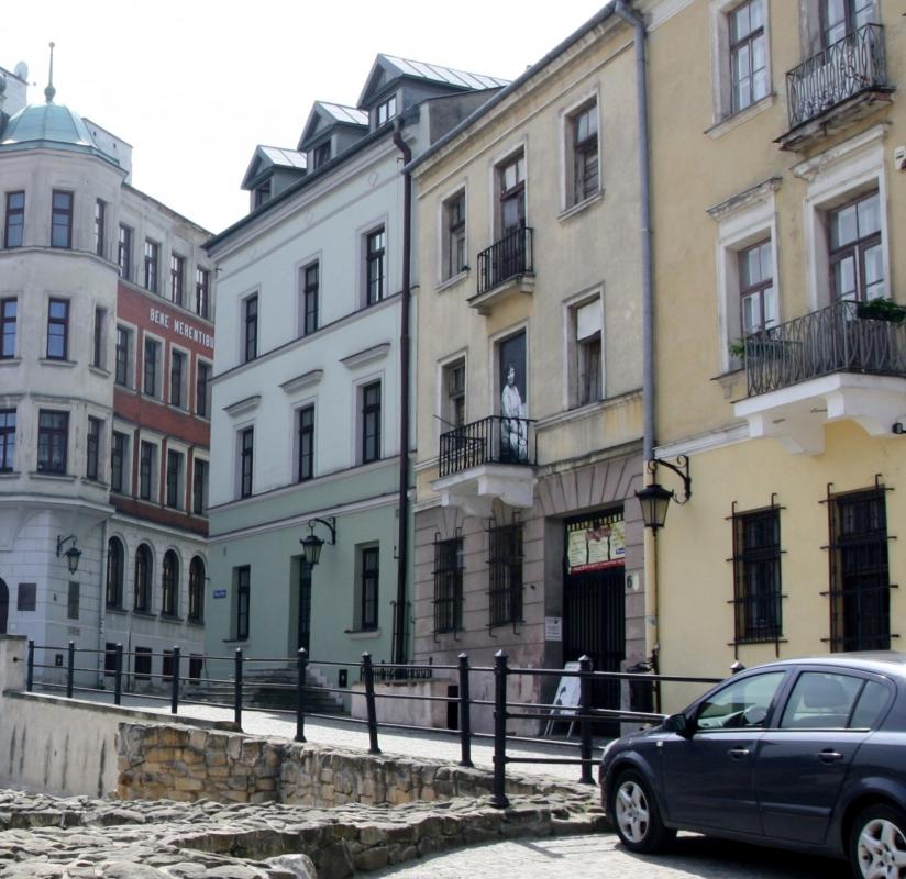 На площади перед Люблянским замком до войны жило еврейское население. Когда немцы оккупировали Люблин, они уничтожили все население этих домов и разрушили все дома. После войны житель города по фотографиям с любовью восстановили все дома на пощади и она стала выглядеть как прежде.
