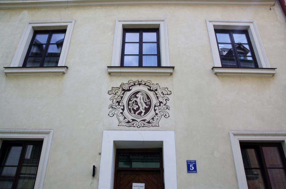 Дом Конопника. Привлекает своим небесным цветом и необычным видом. Это дом 1610 года.
