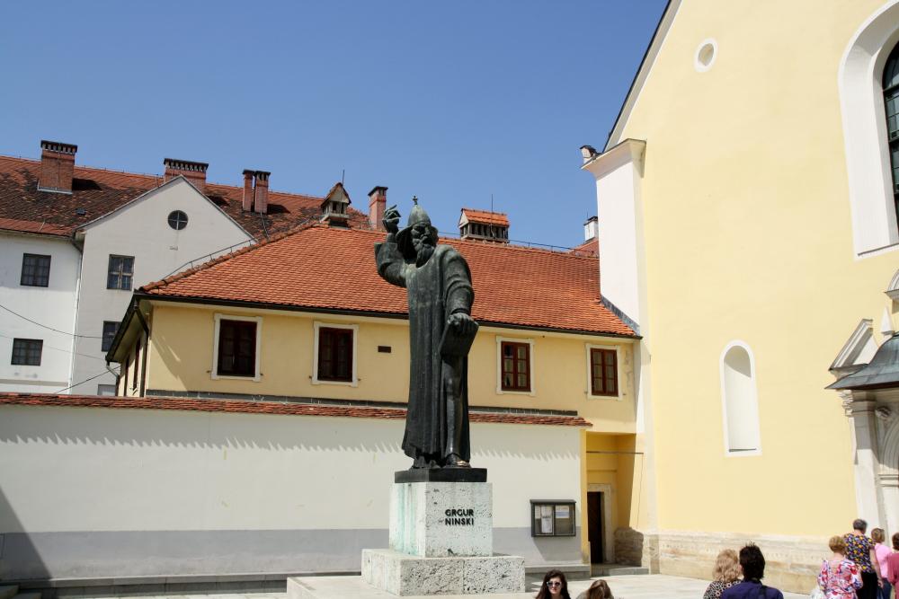 Улицы города , Францисканская церковь, и скульптура епископа Гргура Нинского.