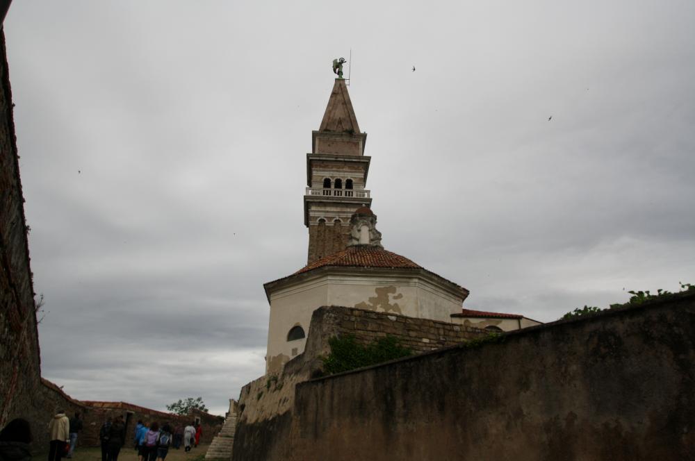 Недалеко от площади на холме находится церковь Святого Георгия, покровителя Пирана. Это церковь 12 века., колокольня стоит отдельно.