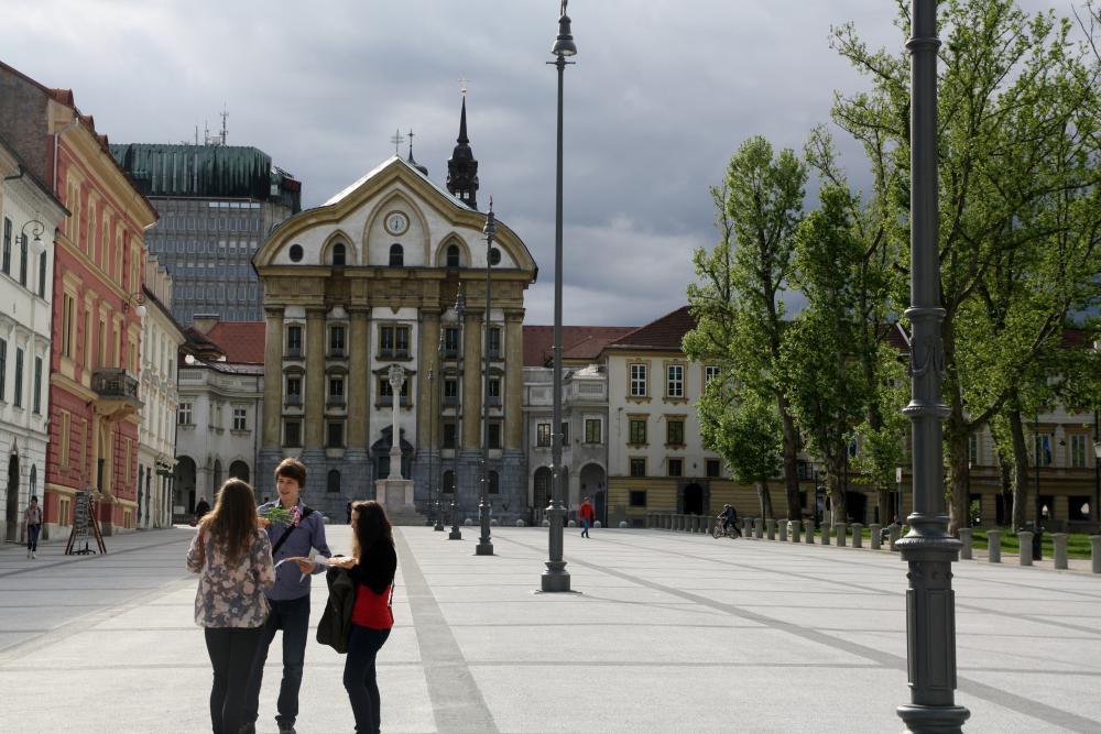 На этой площади находятся университет Любляны, Урсулинская церковь Святой Троицы, построенная в 18 веке.