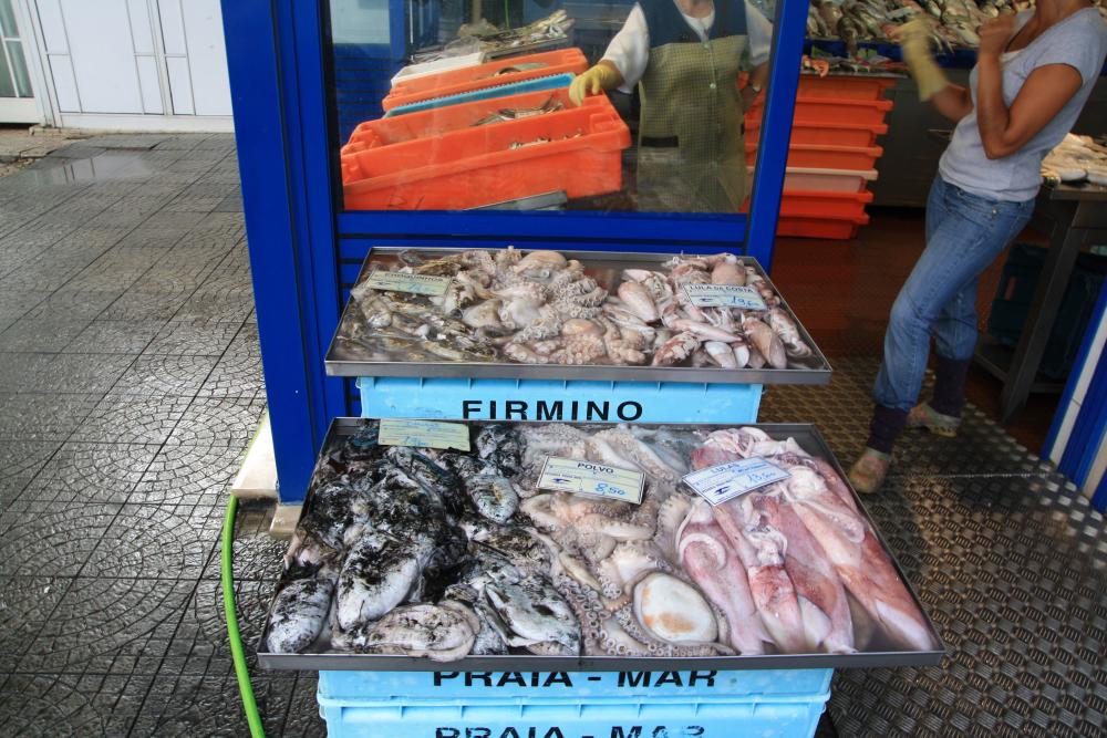 Утром на рынке выкладывают свежую рыбу и разную морскую живность.