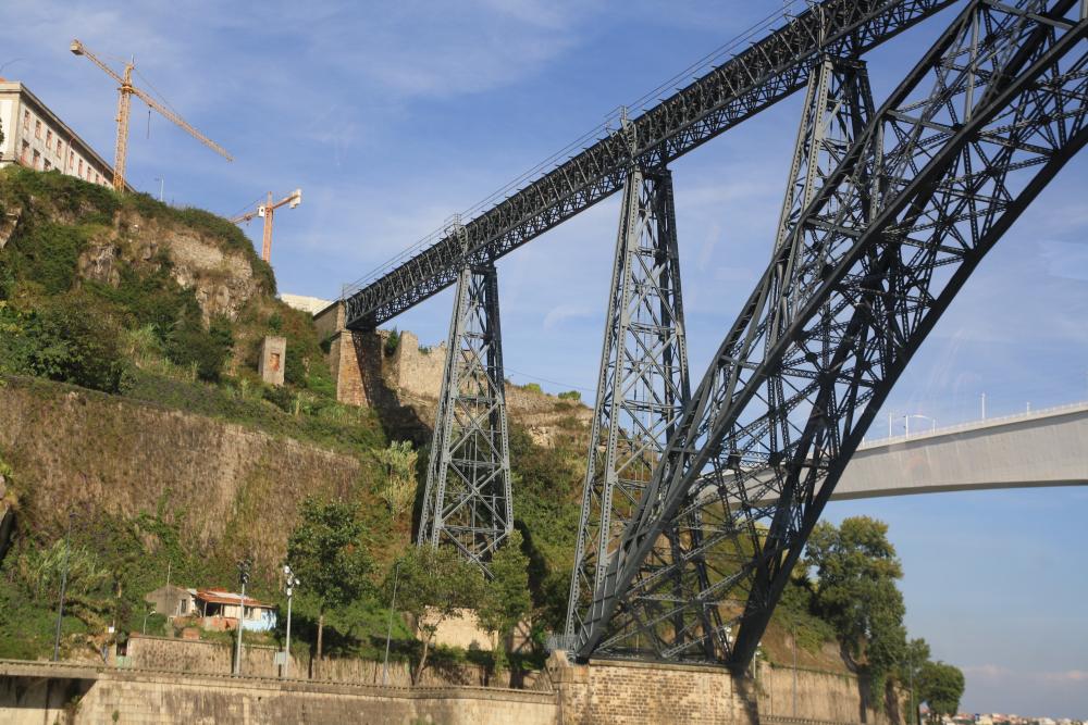 Мост Луиша I, самый старый и специфичный мост. По верхнему пролету пустили метро, а по нижнему едут машины и поезда.