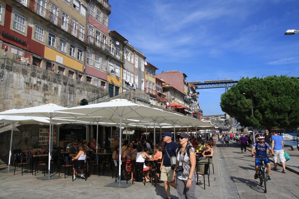 Вдоль реки на набережной находится самый старый район Порто, район Рибейра. Конечно, как здесь люди живут. Наверное самая беднота. Разноцветные домики друг на друга налеплены и поднимаются по холму.
