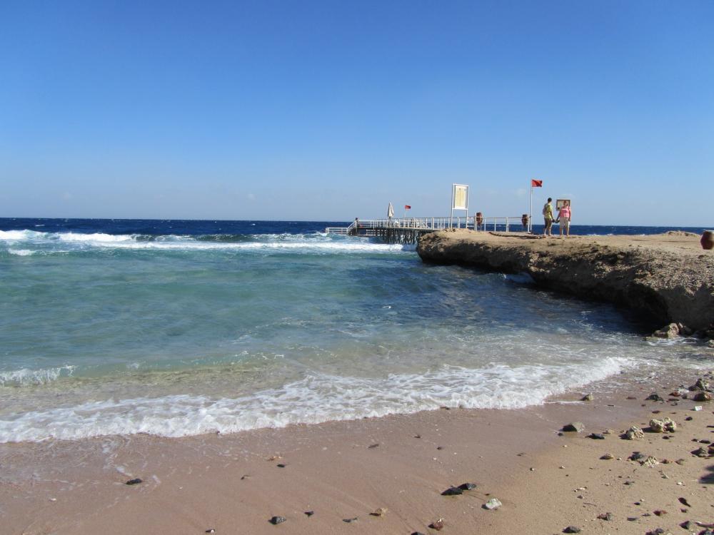 Один из немногих отелей в Хургаде, на пляже которого достаточно много кораллов и рыб. Заход в море с пирса и на большую глубину. Заходить с пляжа по мелководью без тапок не советую, неровности и ежи.