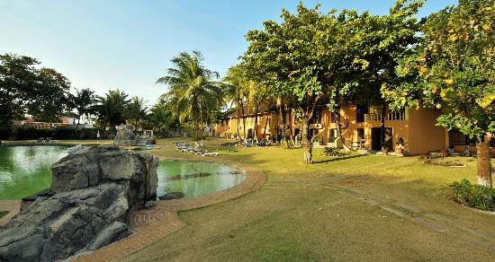 Итак, в отеле есть сад. В котором расположен прекрасный бассейн. Это очень расслабляющий вид, поэтому предпочтительнее брать номер с выходом в сад. Есть даже с каменной просторной верандой, вот это самое то, чтобы отлично отдохнуть в номере.