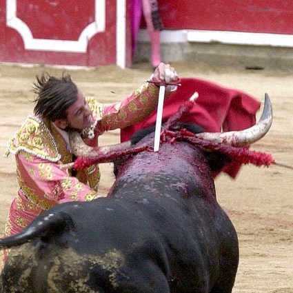 Коррида онлайн режиме также транслируется, поэтому если вам не удалось лично побывать на арене в Испании, то вполне реально получить целую бурю эмоций через экран монитора. Третья терция показывает работу матадора и подготавливает животное к смерти. Однако главной задачей тореро вовсе не является ловкое уклонение от выпадов быка – он, придерживая традиций, стремиться выполнить установленных хореографические фигуры! За 10 мин. после начала третьей терции животное должно умереть. Матадор убивает быка, глядя ему в глаза – воткнув шпагу между рёбер прямо в сердце. С помощью мулов тушу вытягивают с поля боя во внутреннее помещение. Там ее разделывают и передают мясо в больницы или приюты для бедных.