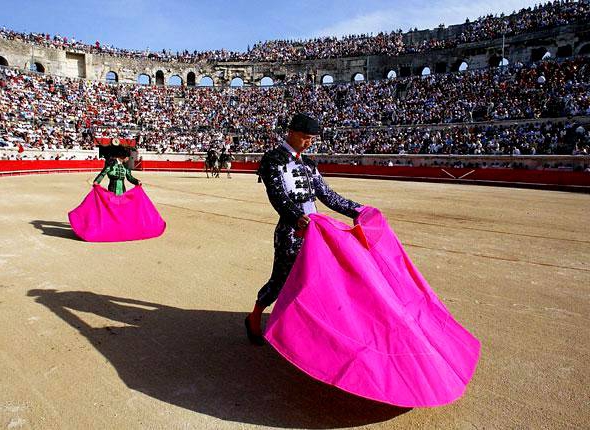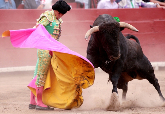 Принято полагать, что красный цвет мулеты раздражает животное, и из-за этого оно кидается на матадора. На самом деле тряпка может быть любого цвета, т.к. быка раздражает не красный, а резкие короткие движения, которые проделывает матадор, дразня животное.