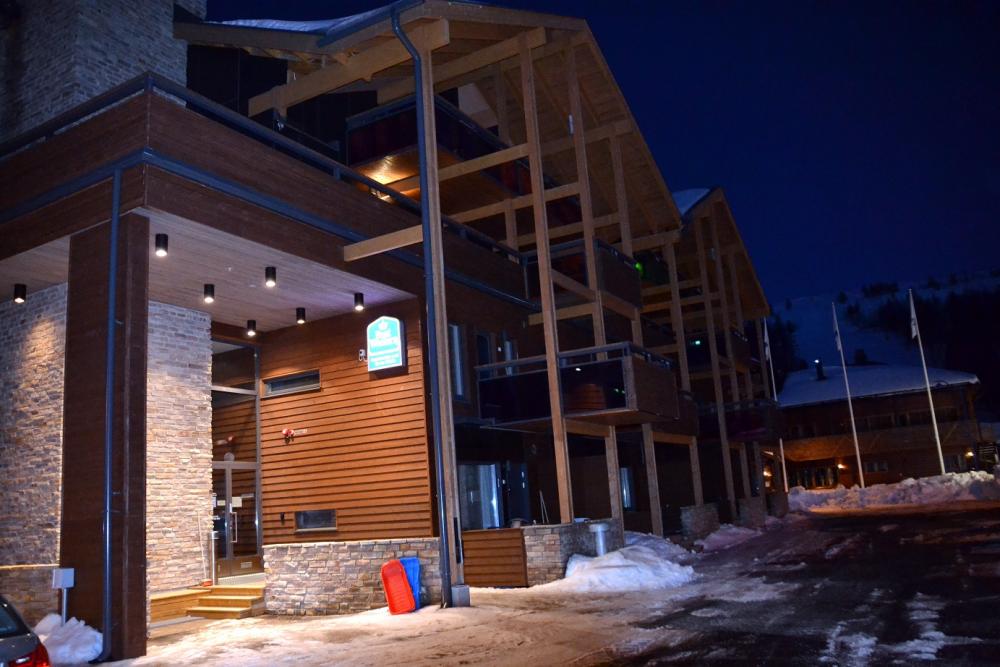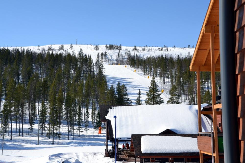Отправиться покататься на лыжах мы решили в конце апреля. Числа так 22. Как видите на фото – снега было предостаточно! И цены в это время были минимальные. Да и народа практически не было. Релакс! Отель очень интересный. Он находиться за чертой города. Практически сразу у входа есть горка. Пожалуйста катайся. Ключи от номера получали в центре Леви. Приехали в отель, своим ключом открыли входную дверь и дверь в номер. Вот отель Torikuja 3, Леви 99130, Финляндия (Ранее BEST WESTERN Apartments Levi Snow White). Тут небольшая поправка – это был не номер в отеле, а апартаменты. Гостиная плюс кухня (вся необходимая посуда есть), плюс 2 спальни, 2 санузла и что не маловажно для горнолыжного отдыха – сауна. Самая настоящая. Представьте какое удовольствие прийти с катания и попариться? Удовольствие двойное – привести в порядок подуставшие мышцы и плюсом косметические процедуры. К вечеру ты бодра энергична!