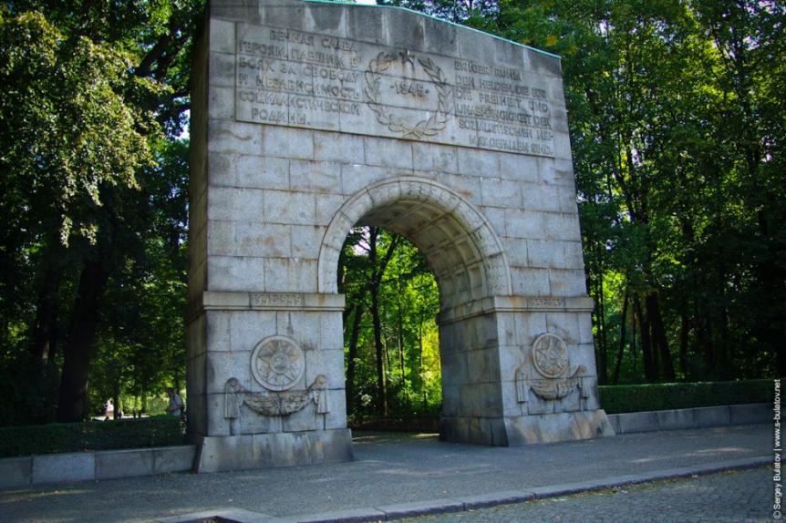 1. Вход в Трептов-парк лежит через огромную каменную арку. Трептов-парк - это место памяти советских солдат, погибших при взятии города.