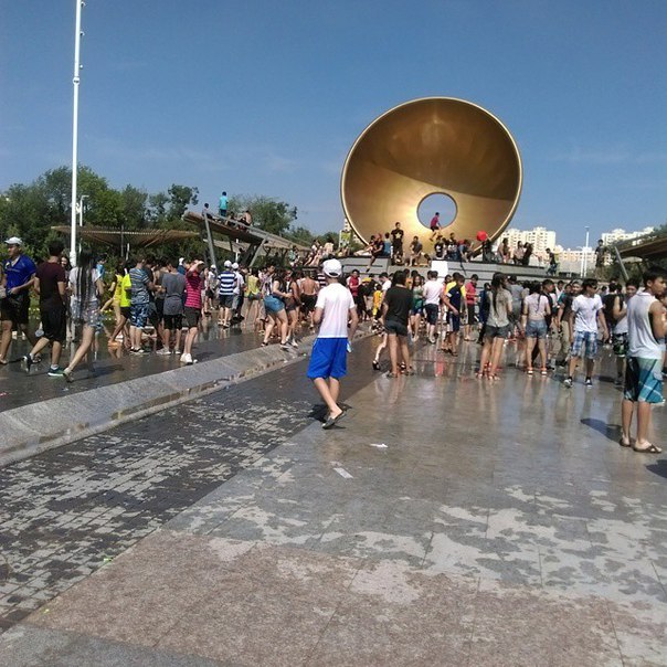 Приехав в Астану, мы естественно захотели посетить центральный парк города. Хочу рассказать свои впечатления, от прогулки по центральному парку. Парк зеленый, с тропинками, аллеями и фонтанами. разбит на 6 частей. Есть теннисный корт, аттракционы. Но больше всего меня впечатлила "Аллея времени" и "Сухой фонтан". Название у этого фонтана, связано с тем, что вода не подниматься струями в вверх, как в других фонтанах, а вытекает прямо из под плит плит и течет дальше по "аллеи времени". Мы приехали в жаркий летний день, и увидели такую картину: дети, подростки, да и взрослые плескаются в этом фонтане, набирают воду из траншей, и поливают друг друга) Народу куча, весело Пошли дальше, увидели 4 грота, из которых тоже льется вода-они олицетворяют собой 4 времени года. Ну и закончили мы все городскими часами(хотя это наоборот главный вход в парк). В общем, мне в парке понравилось, красиво, правда чуть ли не половина парка находиться в процессе перестройки. Значит будет еще лучше в следующий наш приезд.