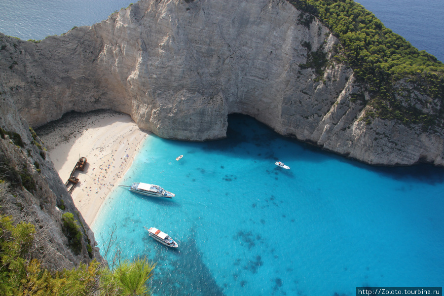 До "Пляжа Кораблекрушений" на Закинфе, кстати, можно добраться только водой. Видела много обзоров, где этот пляж называют одним из лучших в мире, и не зря! Место - изолированное, вода - чистого лазурного цвета и прозрачная. Пляж, ради которого стоит ехать в Грецию даже сейчас, когда кризис не способствует поездкам в Европу для морского отдыха.