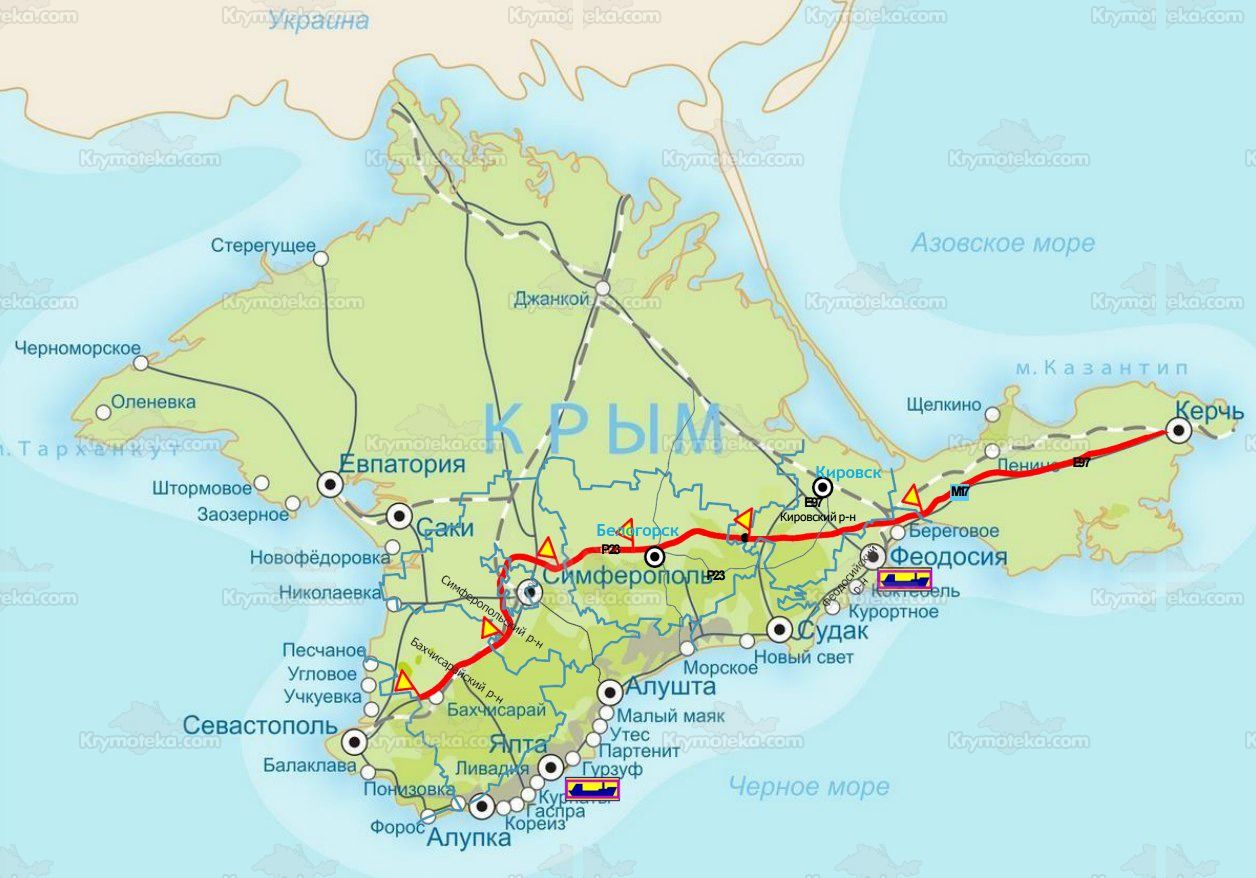 Далее, преодолев 19 км моста, 7,5 из которых проходят над морем, вы попадаете на керченский автоподход протяженностью 8,6 км, а после — на трассу «Таврида», которая проходит через весь полуостров в его южной части.