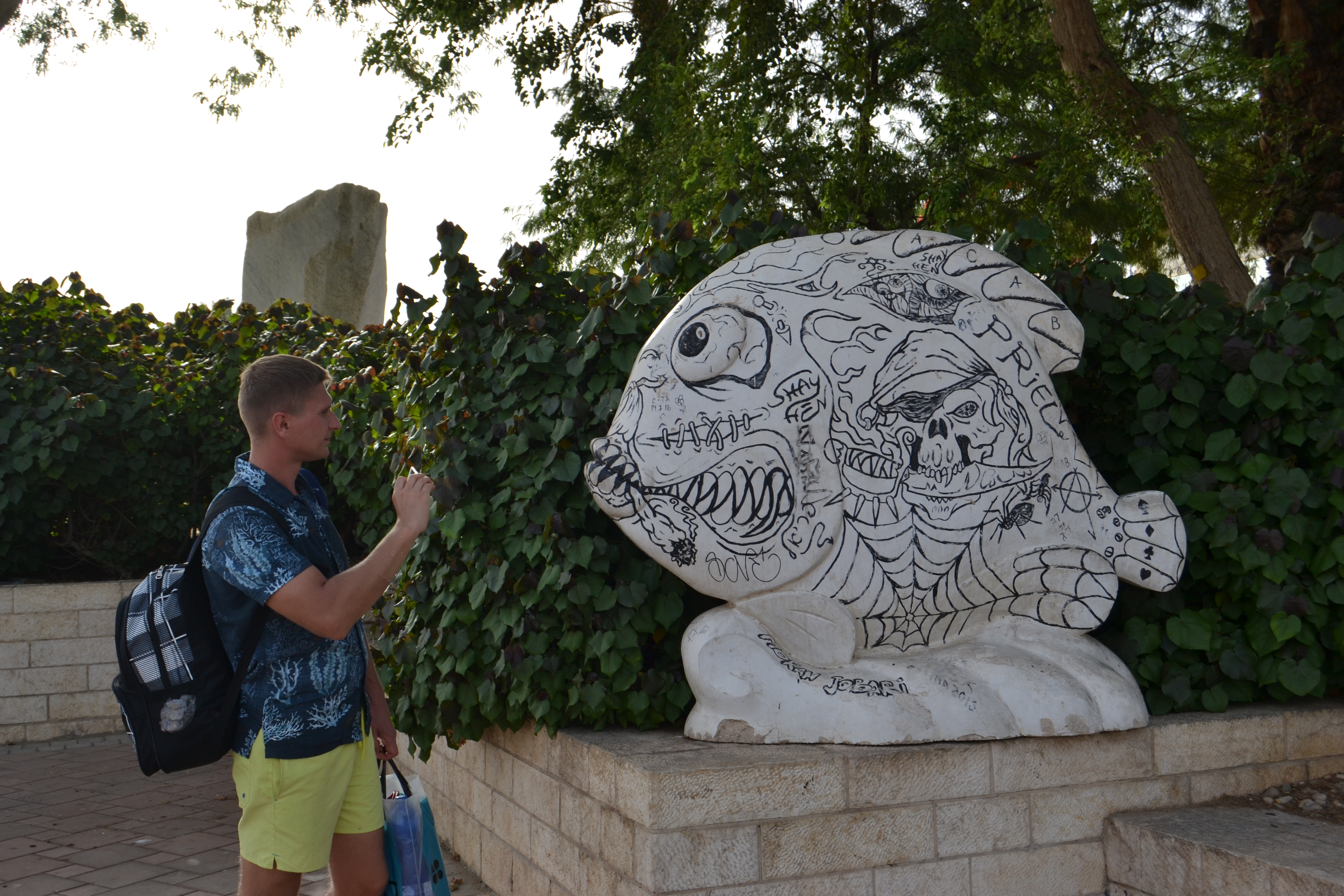 Ну, здравствуй, рыба-пират либо (рыба-пиратка). Подобных рыбок в Эйлате не одна, однако все они сосредоточены возле музея Эйлата. Мы обошли их все, каждая имела свою особенную раскраску, но пираткой среди них была только одна.