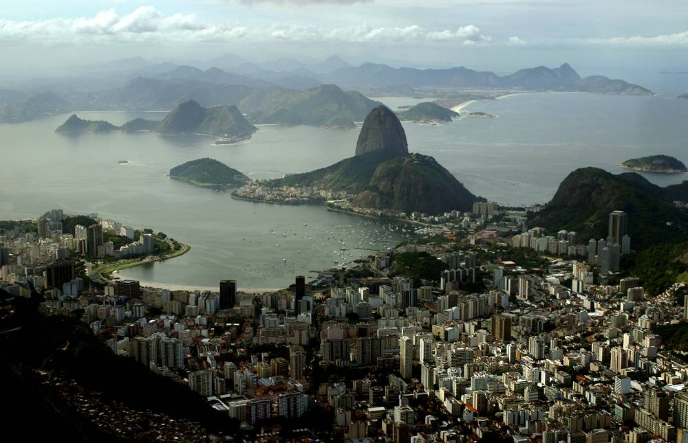 1. Общий вид с вершины горы Корковадо на Рио-де-Жанейро и гору Сахарная Головка. Те, кто взбирается на гору, вознаграждены не только прекрасным видом, но и зрелищем знаменитой статуи Христа Спасителя – символа Рио. (John Brecher / msnbc.com)