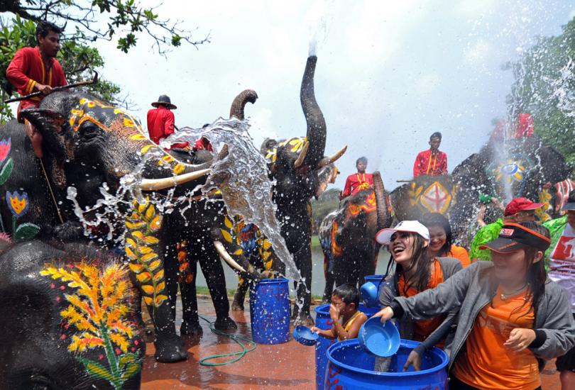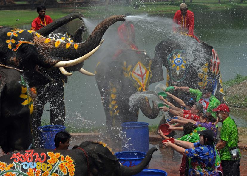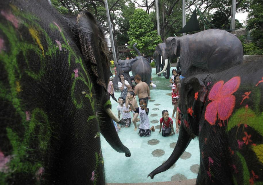 Итак, на новый год у тайцев принято обливать друг друга (да и любого встречного!) водой. Обливаются из чашек, водяных пистолетов, ведер, на улицах стоят люди и обливают тук-туки (местные открытые автобусы)- мало не покажется! Мы охотно включились в эту игру! Так здорово немного пошалить и побрызгаться по жаре! Но я рекомендую обязательно купить непромокаемые чехлы для телефона, фотоаппаратов, кошельков и прочих ценных вещей, т.к. обольют и не спросят. Обижаться бесполезно- Вам добра пожелали! Так же мажут друг друга чем-то типа белой и красной глины. Возле нашего отеля жили отличные местные молодые парни, которые нас разрисовали сердечками, солнышками и прочей милотой, но, пока мы шли до остановки тук-тука (буквально метров 100) нас поздравили еще несколько раз! Так что сердечки стали больше похожи на глиняную маску) Умываться смысла особого не имело, так что мы расслабились и получали огромное удовольствие от всего происходящего!
