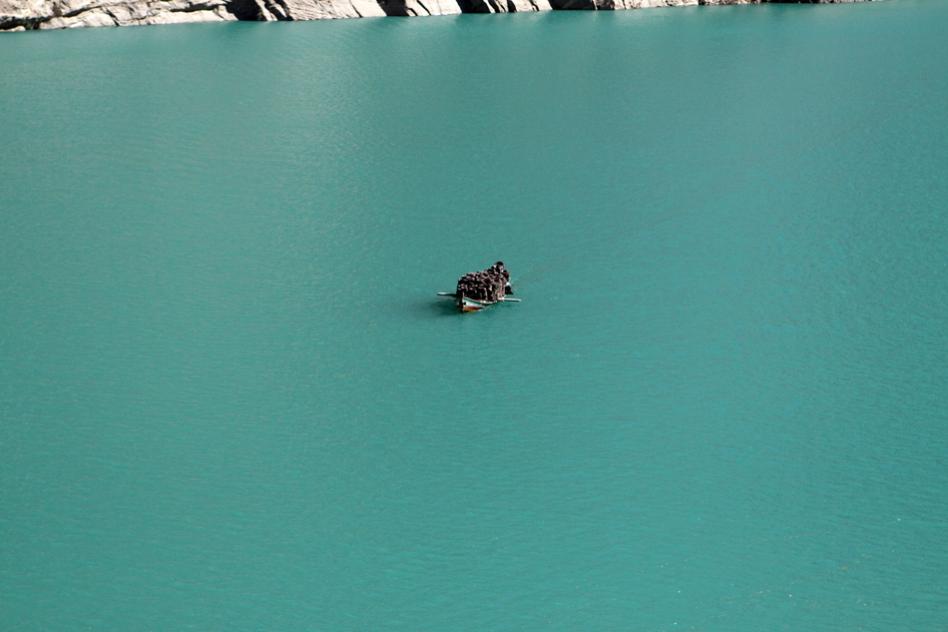 17. Однако все течет, все меняется. Похоронены мертвые, живые привыкают к тому, что рядом теперь большое озеро, правительства Китая и Пакистана совместно решили наладить торговлю по единственной дороге, соединяющей обе страны, но построить уничтоженные водой километры шоссе невозможно. И сейчас товары везут то грузовиками, то на лодках. Так их переправляют через осыпь. Фото Zulfiqar Aali Khan