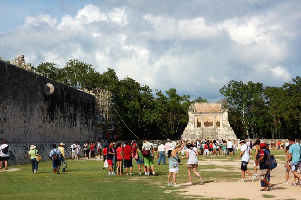 25) Чичен-Ица. Туристы гуляют по дорожкам Кое-кто выбирает свадебный альбом каталог фотограф.