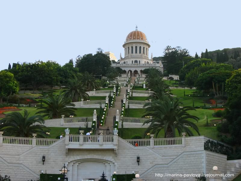 31) Ну и совсем на финише спуска, т.е. на средних террасах. Собственно, прямо по курсу вход на территорию садов бахайского храма и в сам бахайский храм.