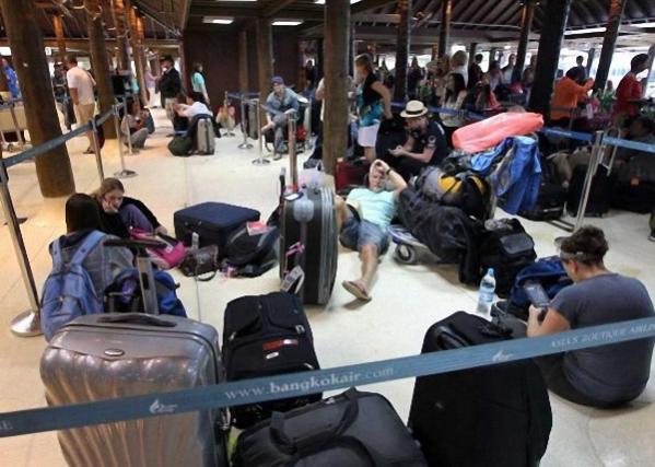 Иностранные туристы пробираются к отелю на острове Самуи, в провинции Сурат Тани, на юге Таиланда, 28 марта 2011 года.