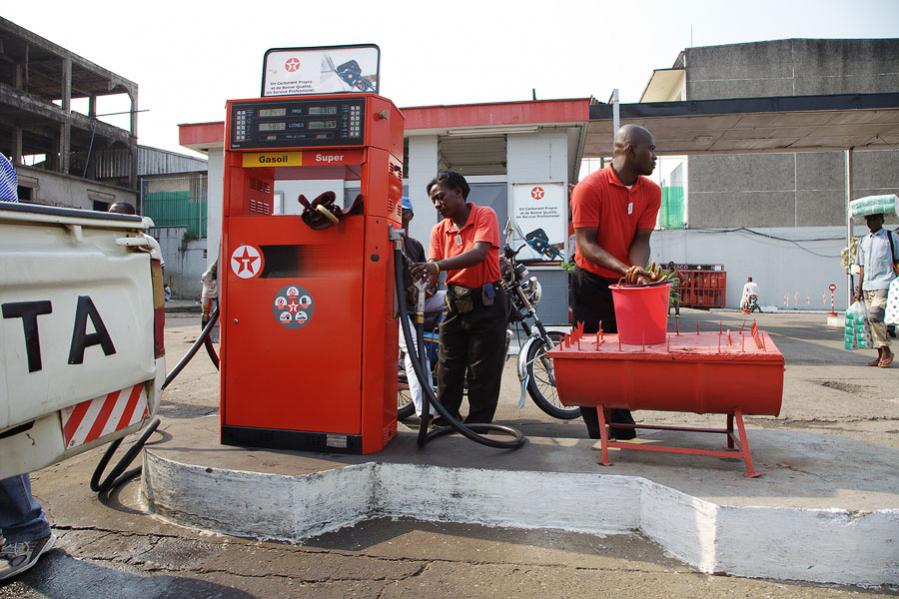 16. Сервисная станция по замене масла. Слева на право: Shell, Mobile, BP, Texaco, Castrol, Elf и местные производители.