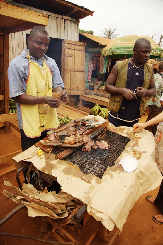17. А как же рабочий народ без еды оставить? Это фаст-фуд по Камерунски. Бумага слева в кармане - упаковочная. В неё выкладывается порезанное и быстро пожаренное мясо, а рядом насыпается ложка острого перца, ну по типу кетчупа. За уши не оттянеш.