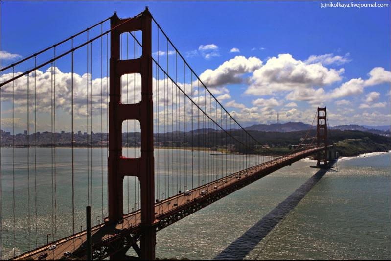 25. Всемирно известный символ Сан-Франциско – мост “Золотые ворота”. Был открыт в 1937 году, имеет длину 2,7 километра. Проезд платный и не дешев – 6 долларов в одну сторону