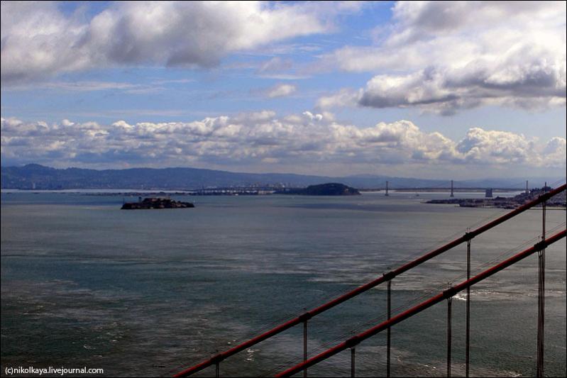26. Слева, если присмотреться, можно увидеть остров Алькатрас. С 1859 года остров выполнял функции военной тюрьмы, с 1934 по 1963 здесь располагалась уже федеральная, самая известная мужская тюрьма Америки, нынче - музей. Любопытно было бы съездить на экскурсию, но не было времени. В этой тюрьме сидели легендарные личности, например, Аль Капоне и Фрэнк Моррис, - можно осмотреть их камеры, или, что тоже весьма интересно - там проводятся тематические экскурсии, посвященные многочисленным жестоким и изощренным попыткам побега. Считается, что никто из заключенных не смог покинуть остров живым, хотя пятеро по-прежнему числятся пропавшими без вести.
