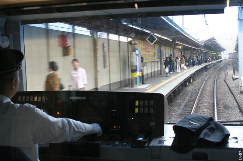 83) В вагонах двуязычные схемы линий, станции объявляют по-японски и по-английски.